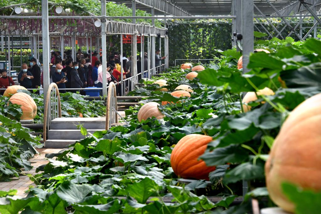 “南瓜树”“黄瓜树”“辣椒树”……通过创新栽培技术,原本卧在地上或挂在藤蔓上的蔬菜,爬到了树上生长;数百斤重的“巨人南瓜”;移动式“植物工厂”……