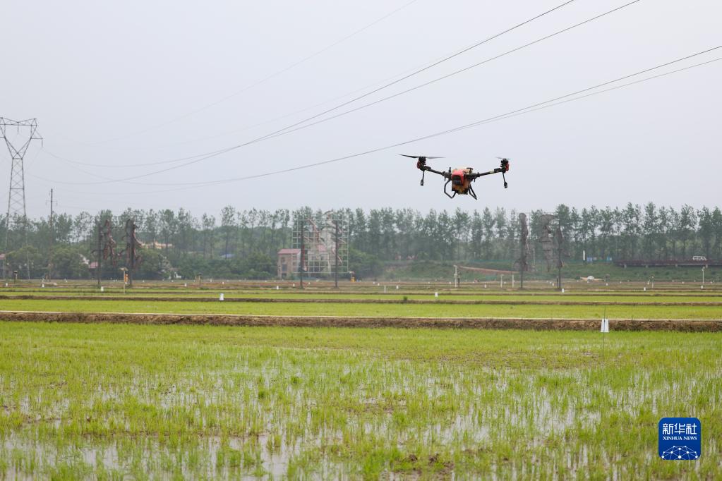4月21日,在湖南省益阳市赫山区中塘村,植保无人机在田间打药。