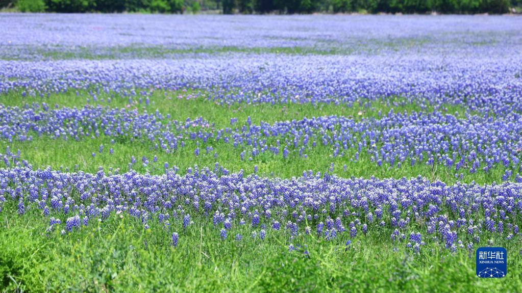 4月15日,美国得克萨斯州乡村地区蓝帽花盛开。新华社记者 徐剑梅 摄