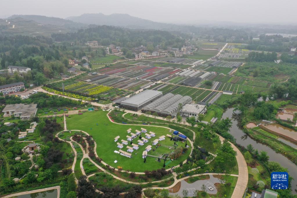 这是4月21日拍摄的位于重庆市大足区雍溪镇的天华百卉园花卉种植基地(无人机照片)。