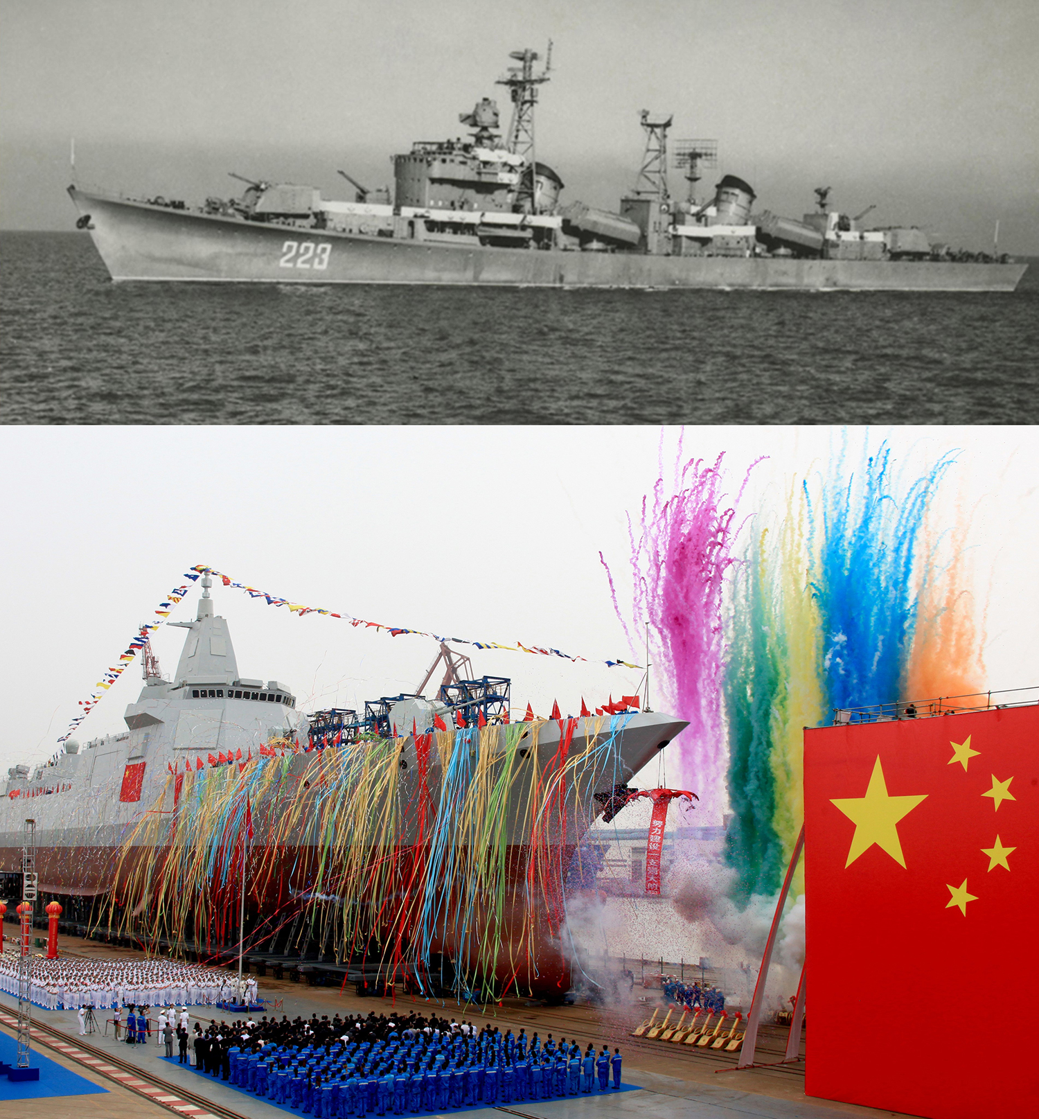 中国海军新一代055型导弹驱逐舰。2017年6月28日,055型导弹驱逐舰下水仪式在上海江南造船(集团)有限责任公司举行。055型导弹驱逐舰是我国完全自主研制的新型万吨级驱逐舰,该舰下水标志着我国驱逐舰发展迈上了一个新的台阶。近日,我国最新的一艘055型驱逐舰咸阳舰正式加入人民海军的队伍,至此,中国海军已有8艘055型驱逐舰官宣服役。