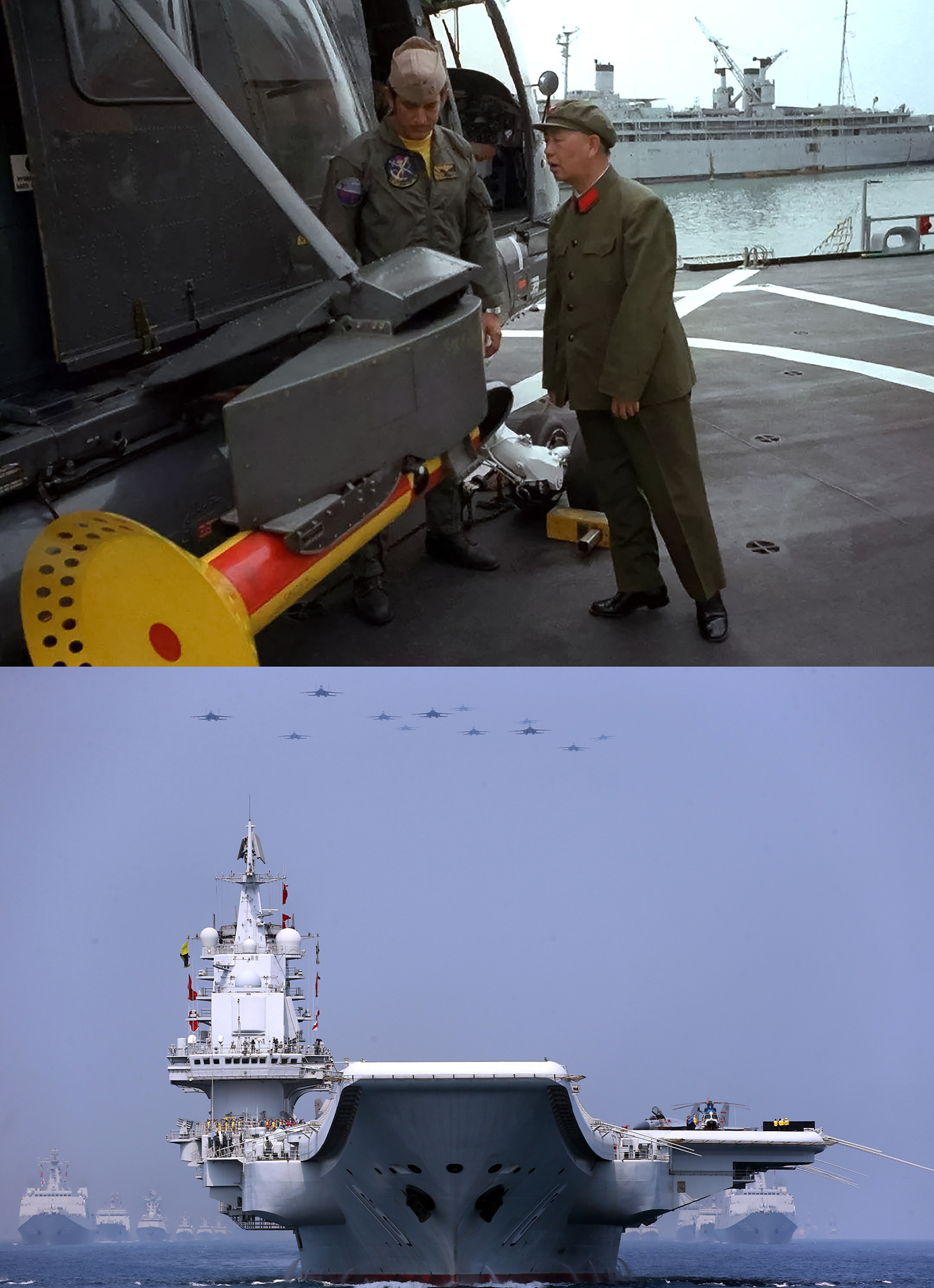 1980年5月25日,中国人民解放军副总参谋长刘华清出访美国时参观“小鹰”号航母。年迈的将军踮起脚尖,目光渴望地望向美军航母。回国之后,刘华清在考察报告中再次提及,中国必须要有自己的航母。“如果中国不建航母,我死不瞑目。”