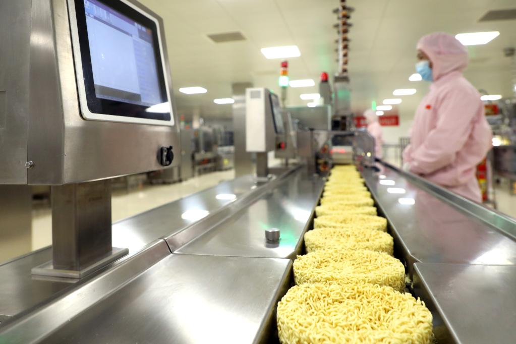 在今麦郎食品股份有限公司,员工在监测自动化制面设备运行情况。新华社记者岳文婷 摄