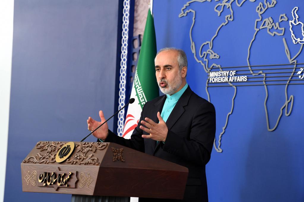 4月17日,在伊朗首都德黑兰,伊朗外交部发言人卡纳尼在例行记者会上。伊朗外交部发言人卡纳尼17日说,伊朗总统莱希与沙特阿拉伯国王萨勒曼已互相邀请对方访问各自国家。新华社记者沙达提摄