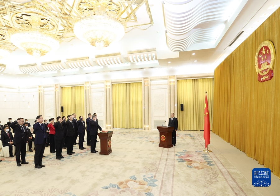 新华社北京4月26日电 十四届全国人大常委会26日上午在北京人民大会堂举行宪法宣誓仪式。全国人大常委会副委员长李鸿忠主持并监誓。