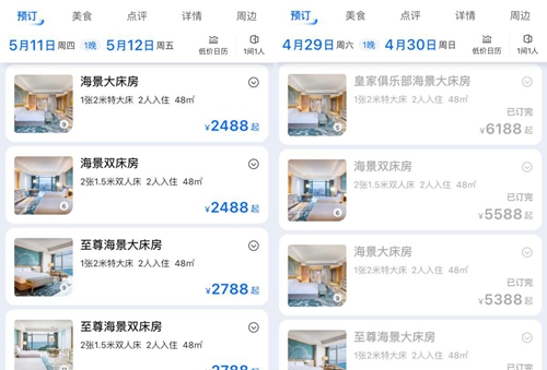 “五一”出游热潮临近,记者通过在线旅游平台查询发现,一些热门旅游城市的酒店均出现不同程度的价格上涨,景区、景点和公交枢纽附近更是涨价“重灾区”。以三亚为例,高星级酒店因房价基数高,涨价后显得尤为“高不可攀”。