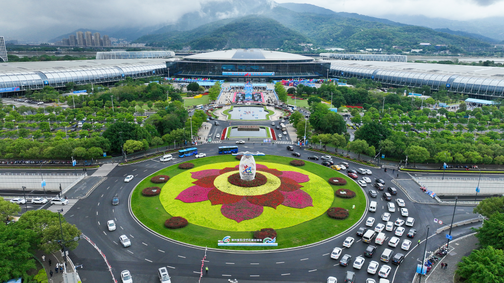 这是4月26日拍摄的第六届数字中国建设峰会主论坛举办地福州海峡国际会展中心。新华社记者 周义 摄