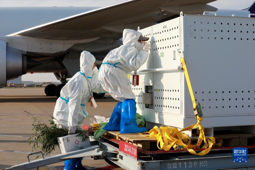 4月27日,旅美归国大熊猫“丫丫”抵达上海浦东国际机场。新华社发(张海波 摄)