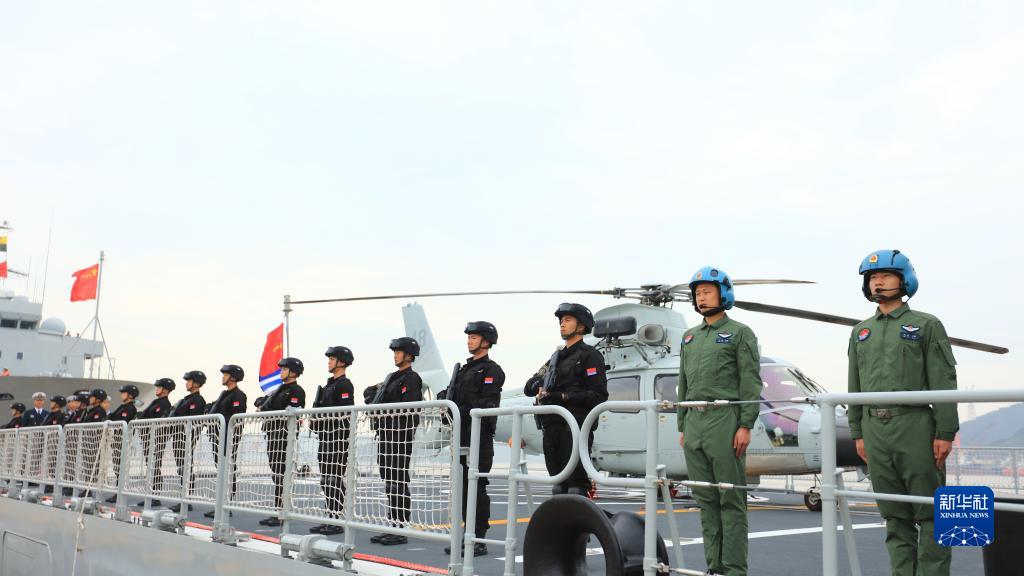 4月28日,中国海军第44批护航编队从浙江舟山某军港解缆起航,随舰机组、特战队员在甲板整齐列队。