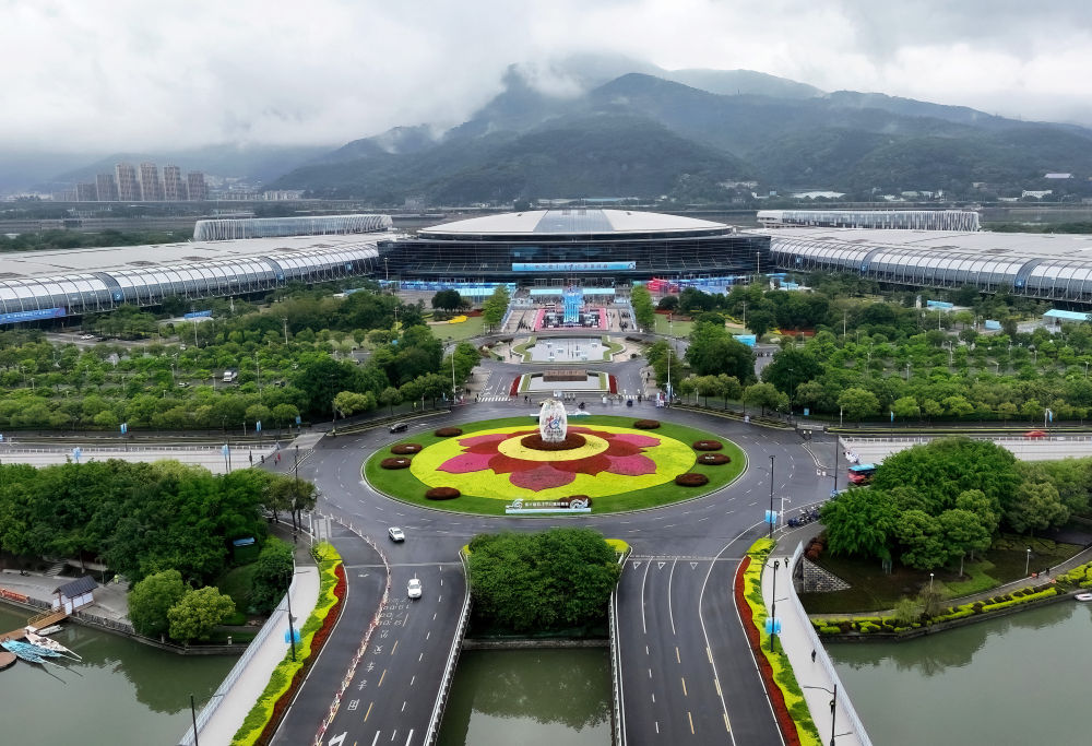 这是4月26日拍摄的第六届数字中国建设峰会主办地福州海峡国际会展中心外景(无人机照片)。新华社记者 魏培全 摄