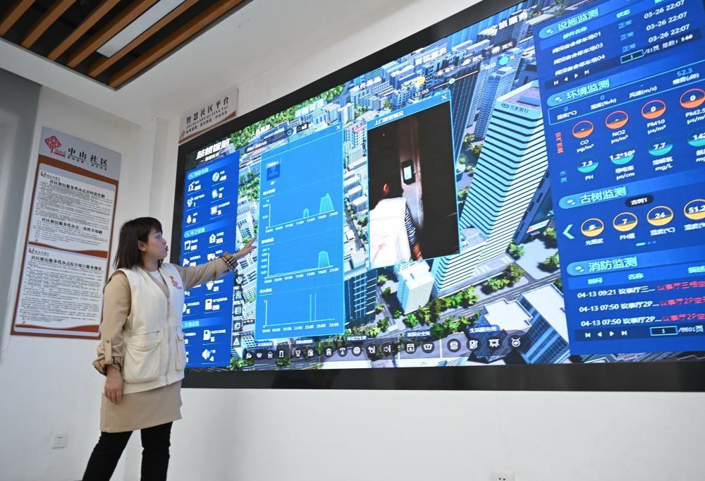 福州市鼓楼区是国家智能社会治理综合实验基地,社区工作者林英在鼓楼区鼓东街道中山社区介绍“智慧社区”建设提升基层治理能力情况(4月25日摄)。新华社记者 林善传 摄