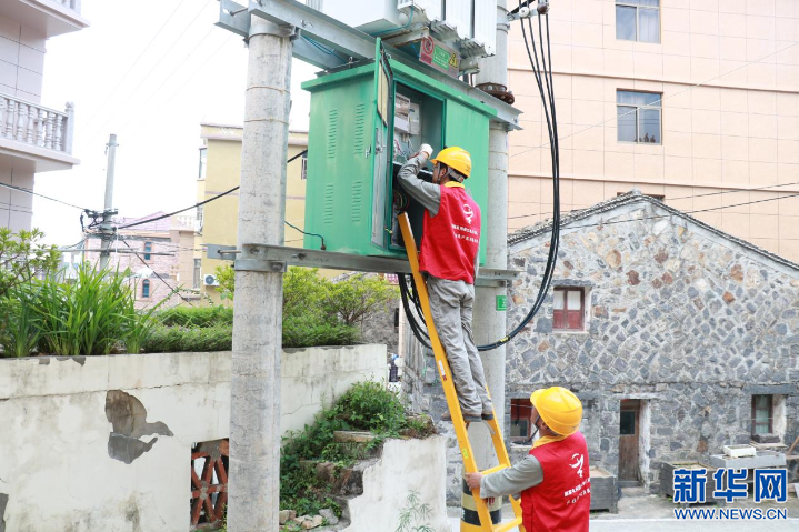 国网浙江电力(洞头)红船共产党服务队队员在下社村进行用电检查。新华网发 国网温州市洞头区供电公司供图