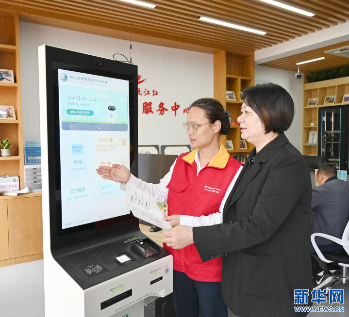 在下社村电力驿站,国网浙江电力(洞头)红船共产党服务队队员协助用户通过网上国网智能服务云终端办理业务。新华网发 国网温州市洞头区供电公司供图