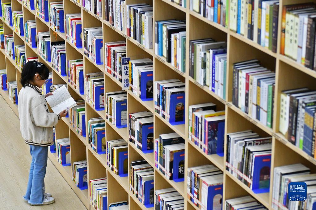 4月29日,小读者在山东省烟台市福山区图书馆阅读书籍。