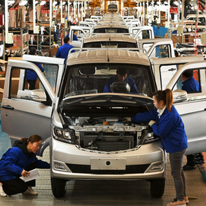 2023年2月27日,工人在贵州航天成功汽车制造有限公司生产车间组装汽车。新华社记者杨楹 摄