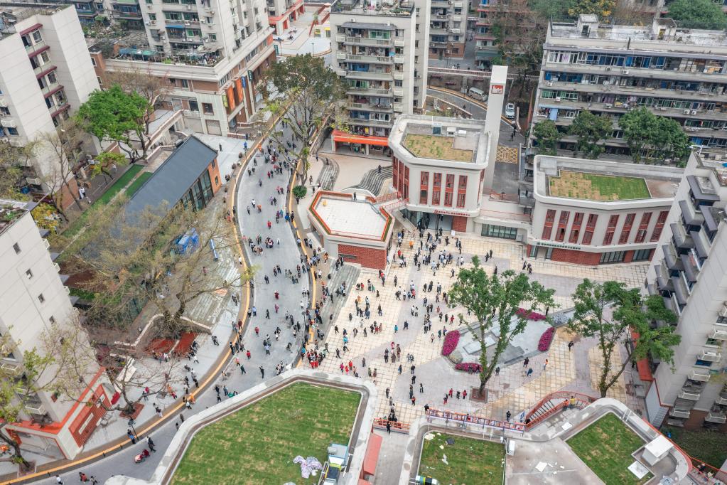 4月28日,重庆市九龙坡区民主村片区城市更新项目(一期)正式竣工亮相,市民游客前来打卡。新华社记者黄伟 摄