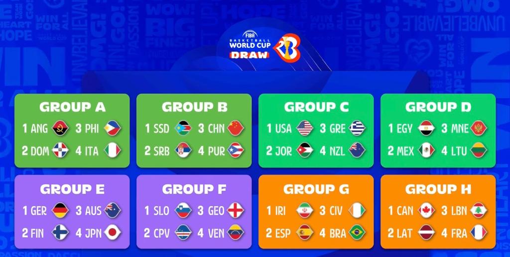 依据抽签规则,菲律宾队自动进入A组,将坐镇主场迎战安哥拉队、多米尼加队、意大利队。美国队分进C组,同组对手有约旦队、希腊队、新西兰队。