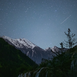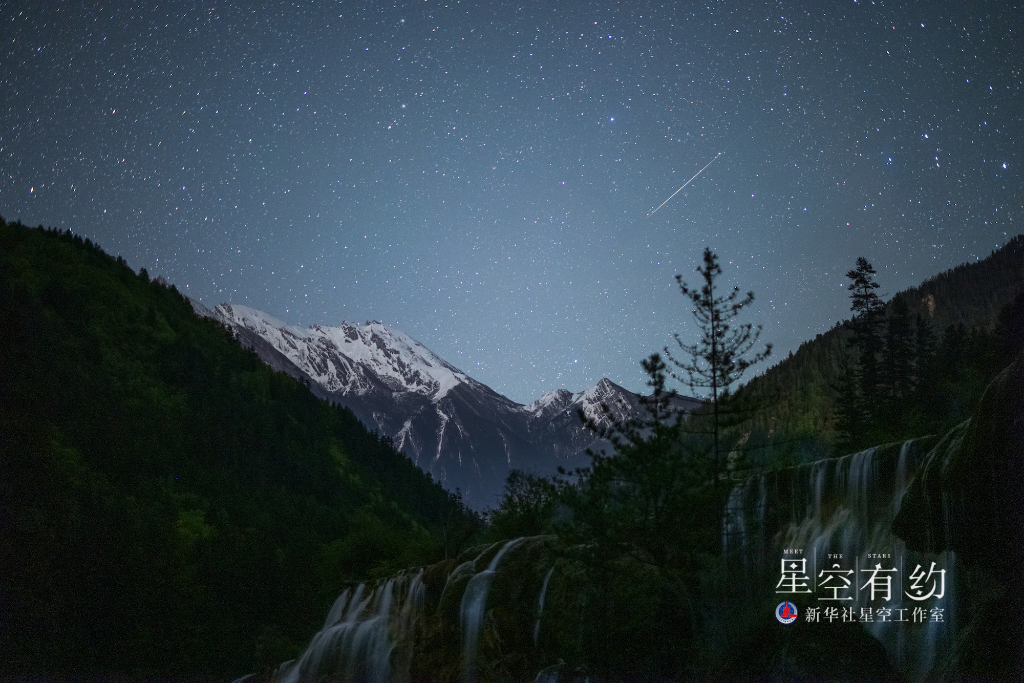 这是重庆市天文摄影爱好者戴建峰2022年5月5日在四川九寨沟拍摄的宝瓶座η流星雨。(本人供图)