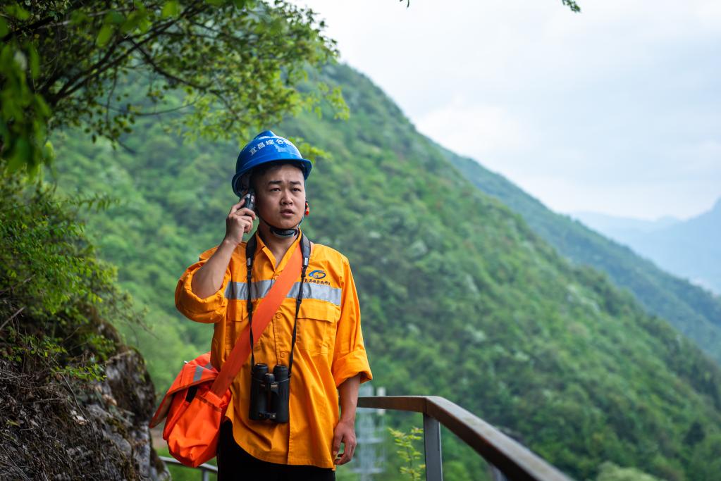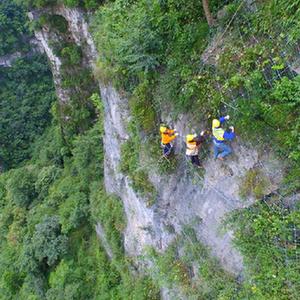 湖北恩施的大山间,伴着动车穿山洞、越山谷的呼啸声,几个黄色身影在悬崖峭壁间格外显眼。