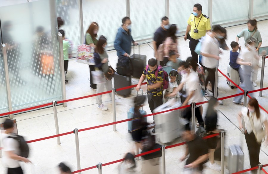 5月3日,旅客经香港西九龙高铁站前往内地。新华社记者 李钢 摄