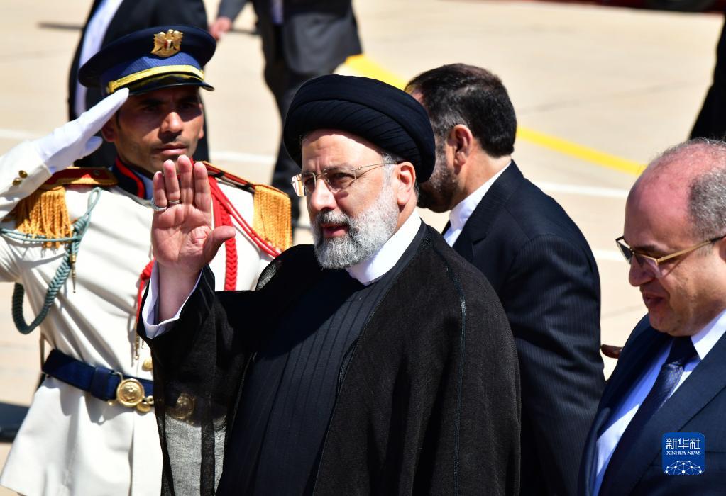 5月3日,伊朗总统易卜拉欣·莱希抵达叙利亚大马士革国际机场。新华社发(阿马尔·萨法尔贾拉尼摄)