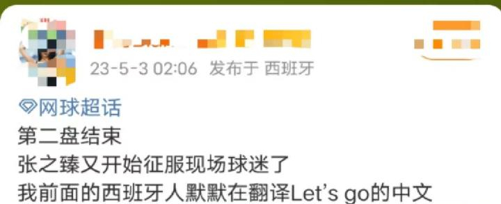 5月2日,在2023年马德里网球公开赛男子单打第三轮比赛中,中国选手张之臻以2比1战胜英国选手诺里,晋级十六强。