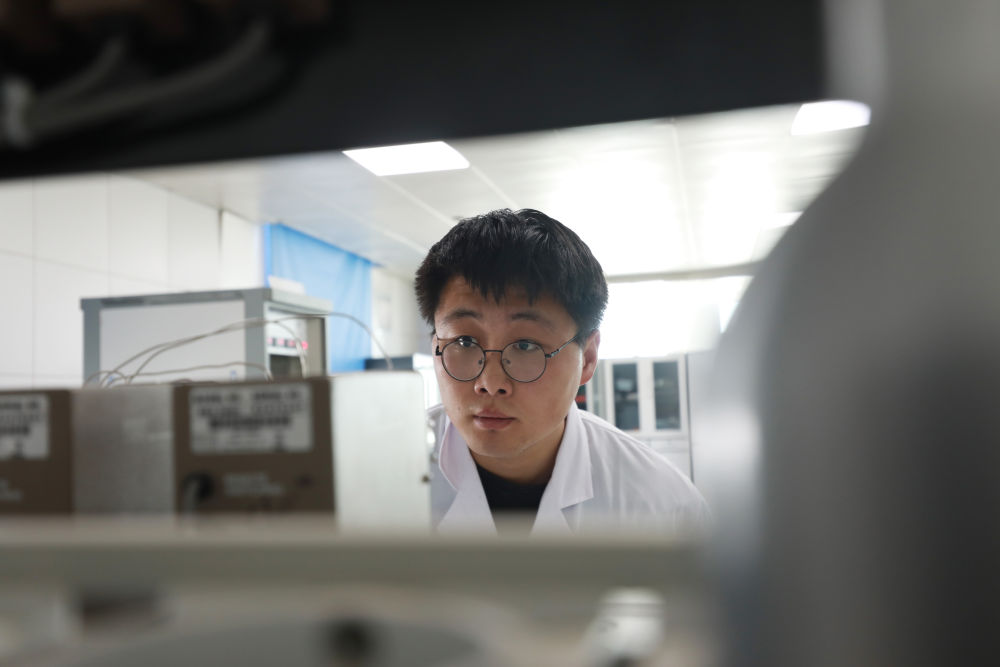 4月6日,瓦里关本底站观测员时闻正在检查仪器。新华社记者 李占轶 摄