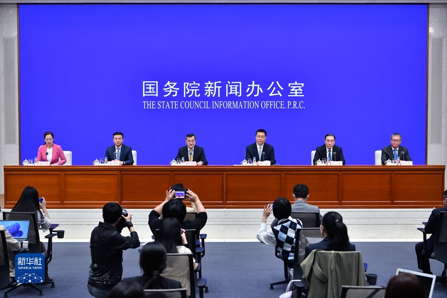5月5日,国务院新闻办公室举行新闻发布会,请商务部副部长李飞、浙江省副省长卢山、宁波市市长汤飞帆、中国贸促会副会长张少刚和商务部欧洲司司长余元堂介绍中国与中东欧国家经贸合作及第三届中国—中东欧国家博览会暨国际消费品博览会有关情况,并答记者问。 新华社记者 李鑫 摄