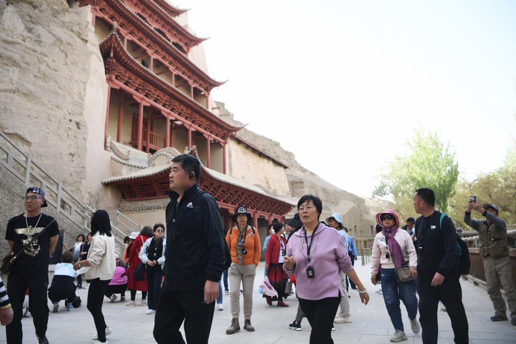 游客在莫高窟游览(4月25日摄)。新华社记者 陈斌 摄