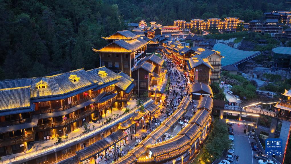 5月1日,游人在重庆市酉阳土家族苗族自治县酉州古城游玩(无人机照片)。