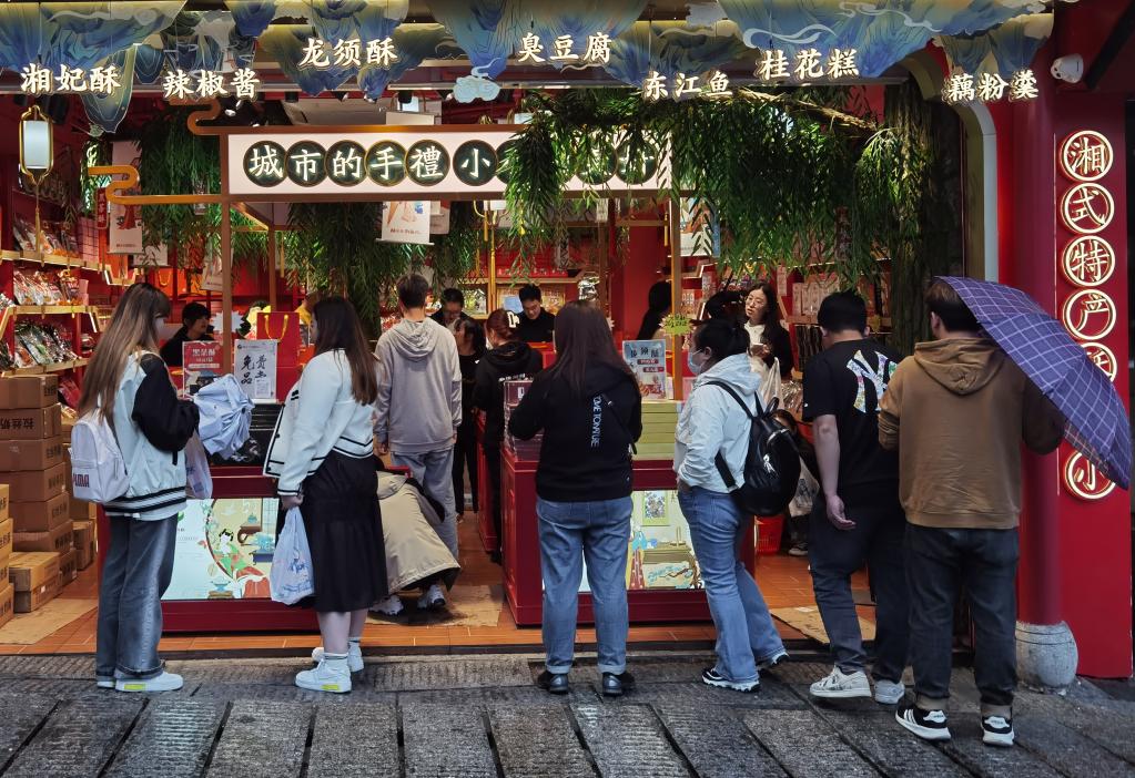位于长沙五一商圈的一家特产店里人头攒动。新华社记者白田田 摄