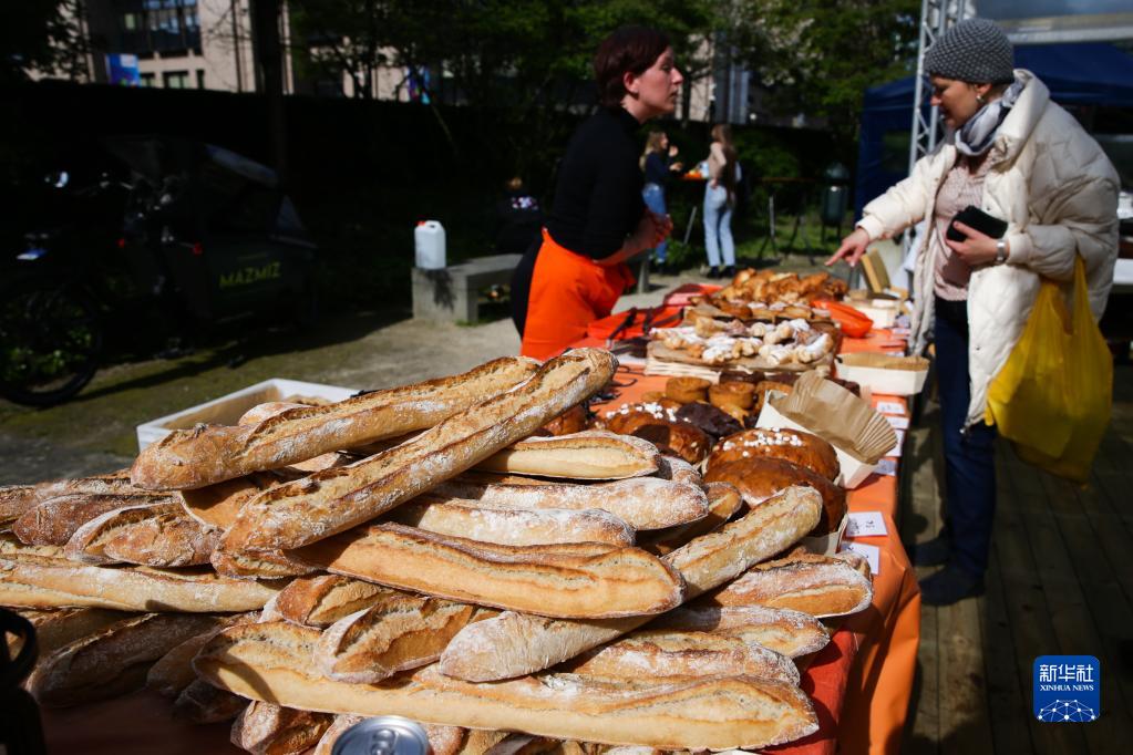 布鲁塞尔当日举行面包节活动,人们可在活动现场品尝、购买来自欧洲多地的风格各异的面包。