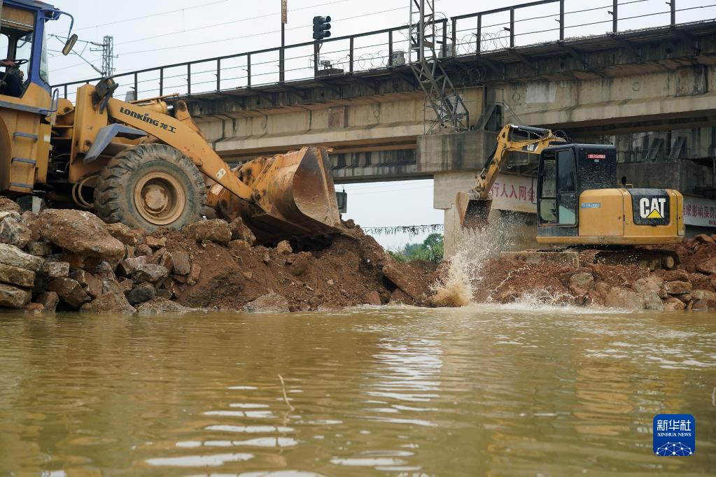 这是在江西省丰城市丽村镇尚山村拍摄的溃口封堵现场(5月7日摄)。新华社记者 万象 摄