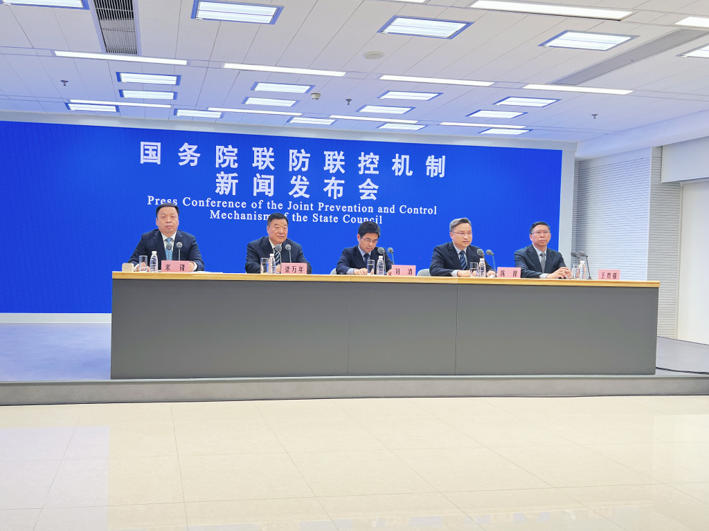 5月8日举行的国务院联防联控机制新闻发布会现场。新华社记者顾天成 摄