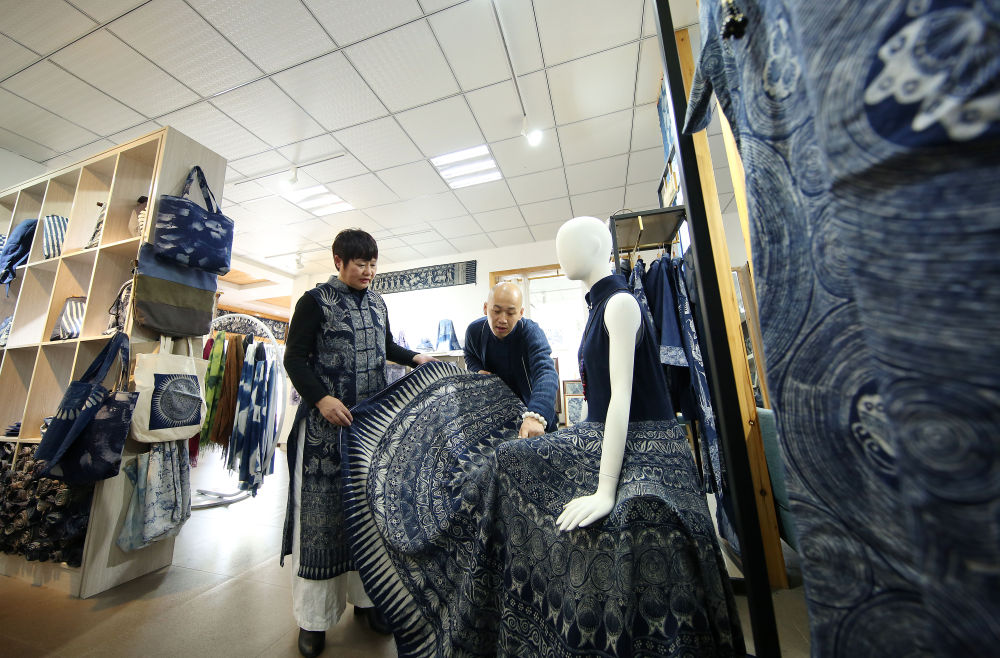 宁曼丽与这抹靛蓝色的初次相遇是在14年前,当时她在安徽经营着一家织布厂,受市场影响,面料积压,工厂濒临倒闭。