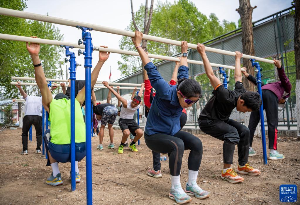 在西藏自治区体育运动技术学校,玉珍拉姆(前排左一)在训练后拉伸(4月29日摄)。新华社记者 孙非 摄