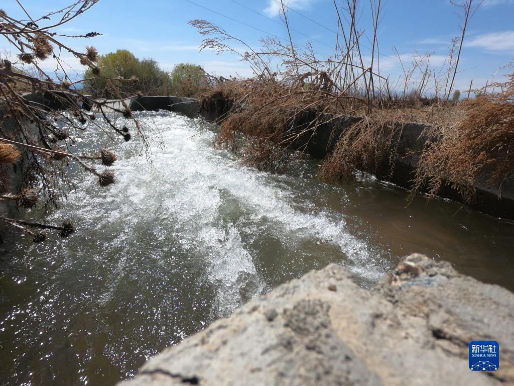 这是4月25日在吉尔吉斯斯坦阿克奥隆村拍摄的一处水渠。新华社记者 关建武 摄