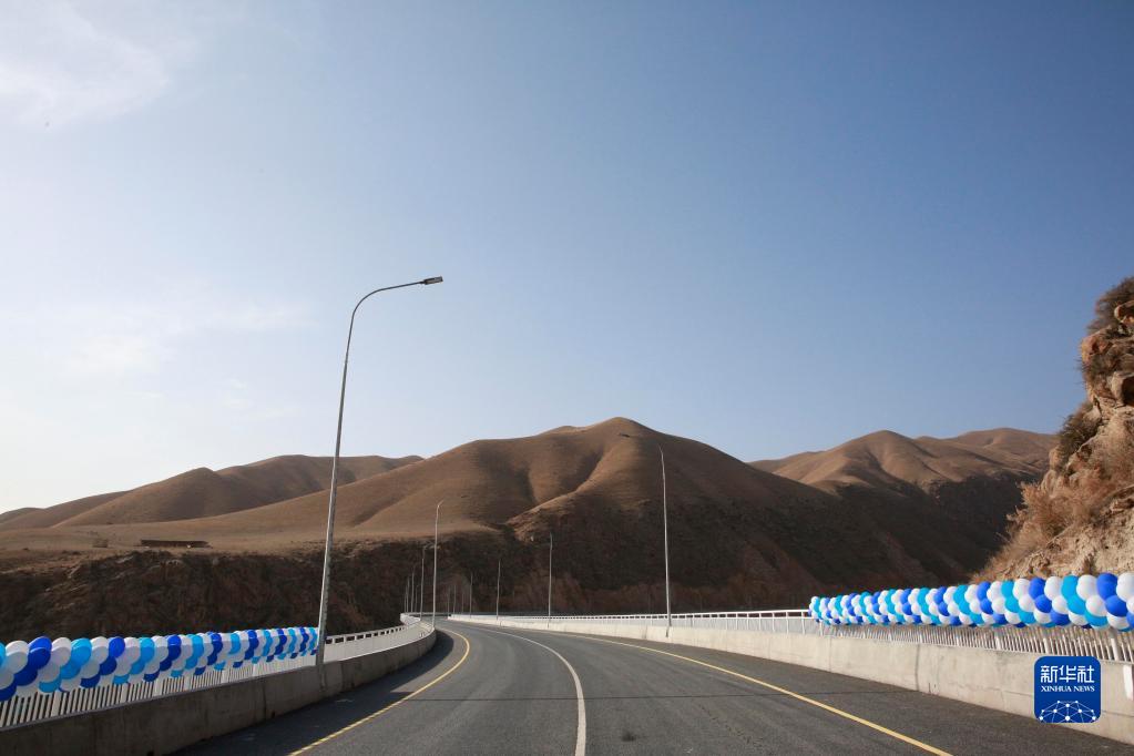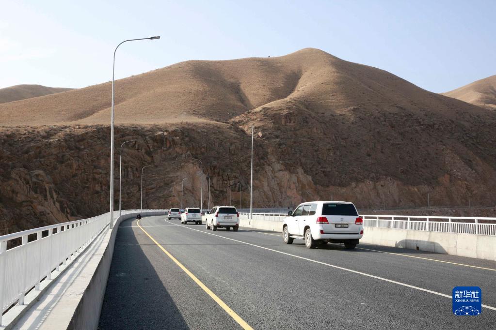 2021年11月10日,汽车行驶在吉尔吉斯斯坦新北南公路二期工程的一座大桥上。新华社发(罗曼 摄)