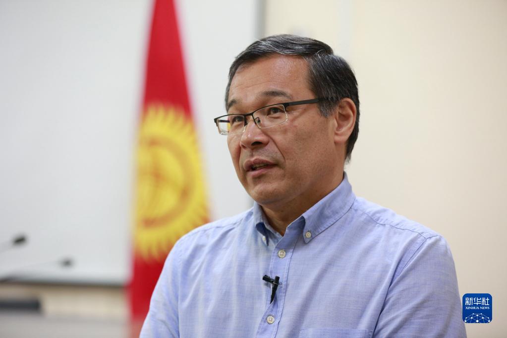 4月27日,吉尔吉斯斯坦国家战略研究所外事咨询师舍拉迪尔在吉尔吉斯斯坦比什凯克接受新华社记者采访。新华社发(罗曼 摄)