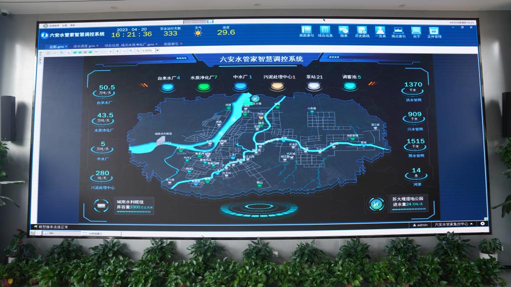 安徽六安水管家智慧调控系统是国内首个自主研发的全业态水务智慧调控系统,实现对所有接入场站的集中监视和远程控制,以及在此基础上的一体化调度。新华社记者侯雪静 摄