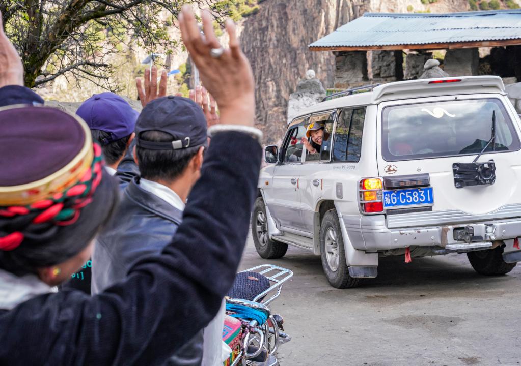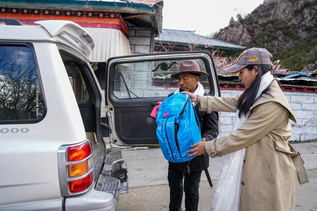 临行时,爸爸帮玉珍拉姆将行李装车