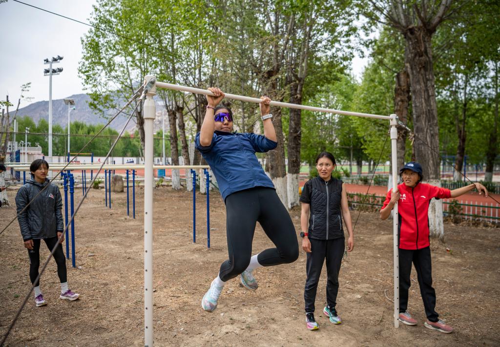 玉珍拉姆在进行体能训练