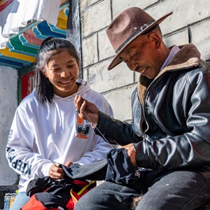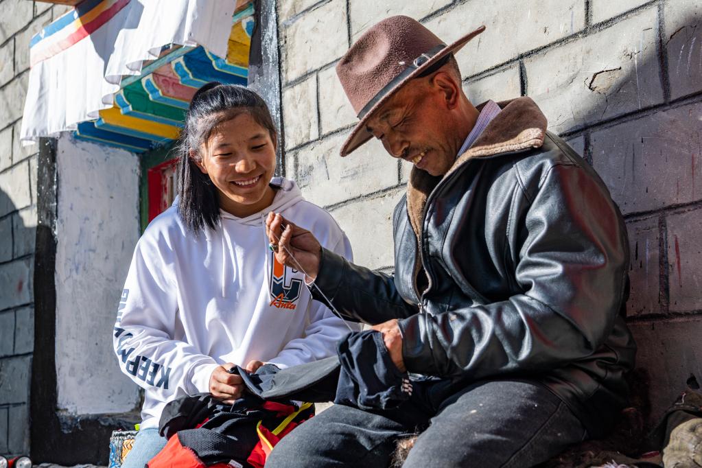 爸爸帮玉珍拉姆修改运动服