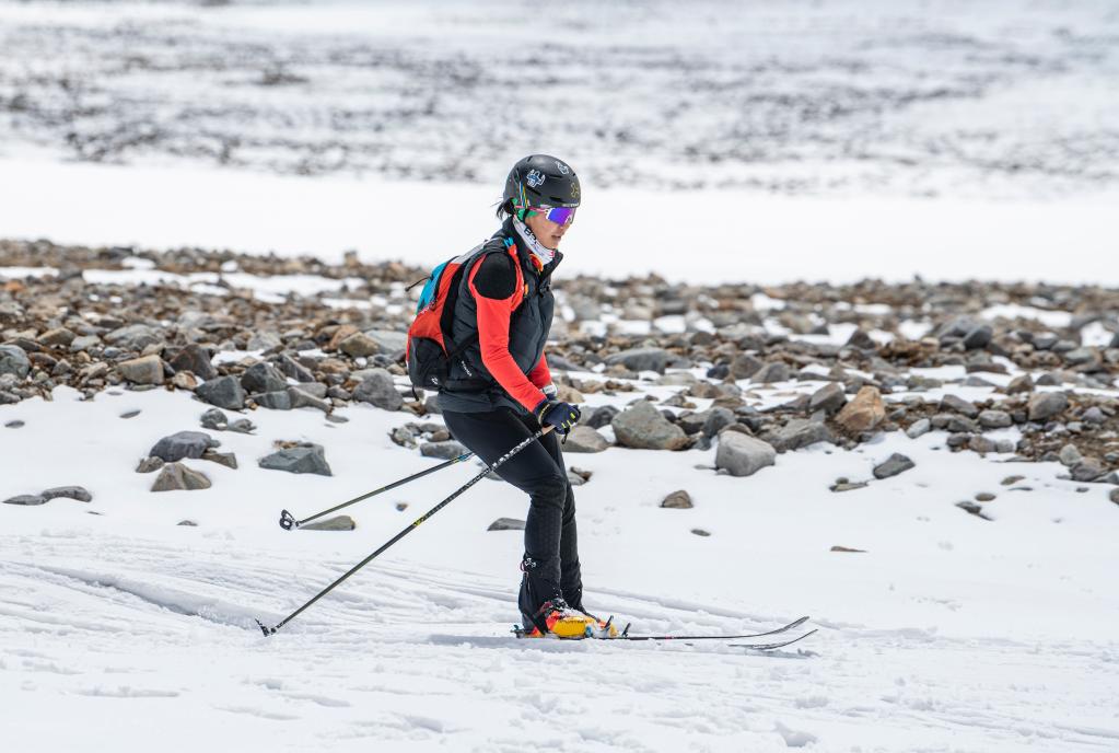玉珍拉姆正在进行滑雪登山训练
