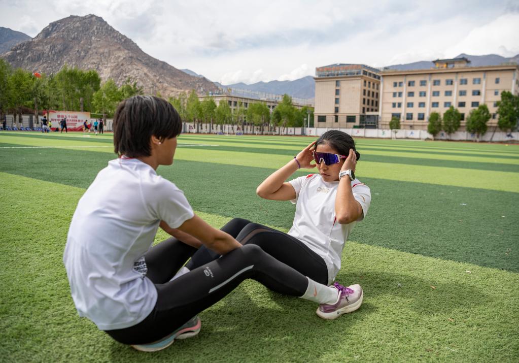 玉珍拉姆(右)在进行体能训练