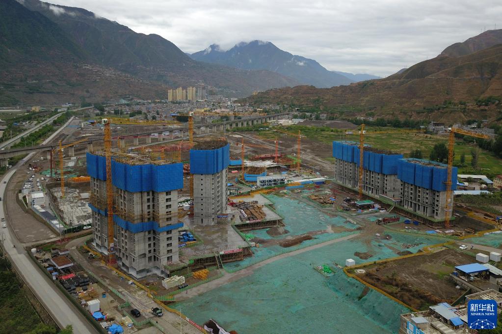 这是在甘肃省陇南市武都区拍摄的建设中的武都区生态及地质灾害避险搬迁汉王片区集中安置点(5月10日摄,无人机照片)。