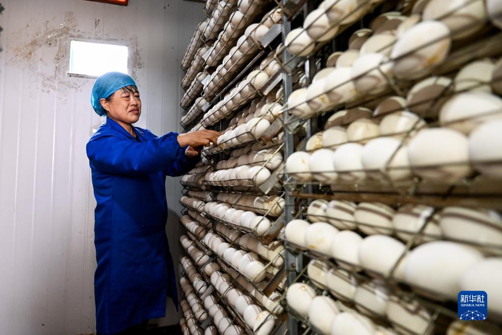 5月12日,阿荣旗全顺大鹅养殖专业合作社工人查看鹅种蛋孵化情况。