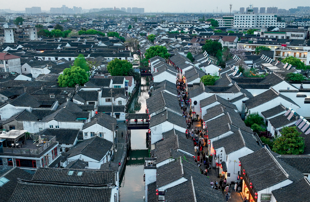 游客在江苏苏州山塘街休闲游玩(2023 年 4 月 10 日摄) 李博摄 / 本刊