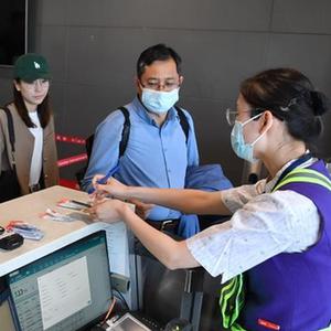 5月13日,乘坐西安-乌鲁木齐-阿什哈巴德首趟航班的旅客准备登机。新华社记者 邵瑞 摄
