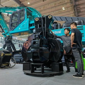 在山河智能装备股份有限公司的展区,一台40吨级的多功能挖掘机同样造型奇特:驾驶室高出底盘一大截,旁边摆放着粉碎钳、振动夯等各种各样的属具,如同“十八般兵器”。